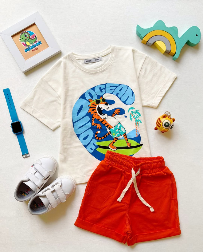 تیشرت سفید تک ببر موج سوار برند مانکی