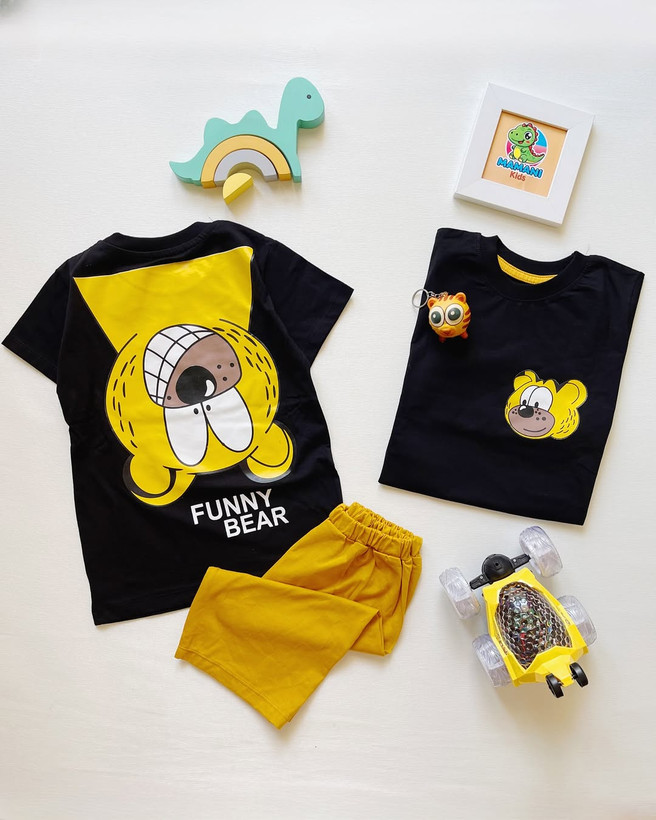 تیشرت شلوارک خرس بازیگوش وارونه نخ پنبه funny bear