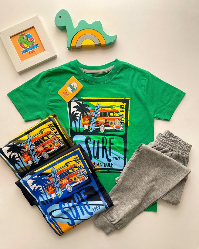 ست تیشرت و شلوار پسرانه (برای دیدن تنخور کار ورق بزنید) برای آقا پسرهای گل ۶ تا ۱۱سال تیشرت و شلوار موج سواری جنسش عالیه لطیف و خنک و رااااحت بیاد دستتون لمس کنید عاشقش میشید ازون لباسایی که به زور باید از تنشون دربیاریم از بس که راحته تیشرت و شلوار که میدونید چه قدر کاربردیه نگم براتون جنس تیشر نخ پنبه سوپر جنس شلوار ملانژ لاکرادار سایز 50 5560(اندازه ها پست آخر)