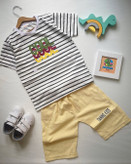 اینم ست تیشرت راه راه با شلوارک کتان هم دخترونه اس هم پسرونه اسلاید آخر فیلم کار بدون ادیت بلوز پنبه لاکرادار شلوارک کتان تَنخور شیک با سه رنگبندی شلوارک حدود سنی ۳/ ۶ سال سایزهای موجود: سایز ۴۵: قد ۴۵، پهنا ۳۴، شلوارک ۳۸ سایز ۵۰: قد ۵۰، پهنا ۳۶،شلوارک۴۲ با قی.مت باورنکردنی فقط فقط 185000‼ مارو مقایسه کنید مامانی کیدز @mamanikids