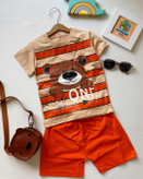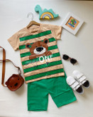ست تیشرت شلوارک راه راهی خرس one